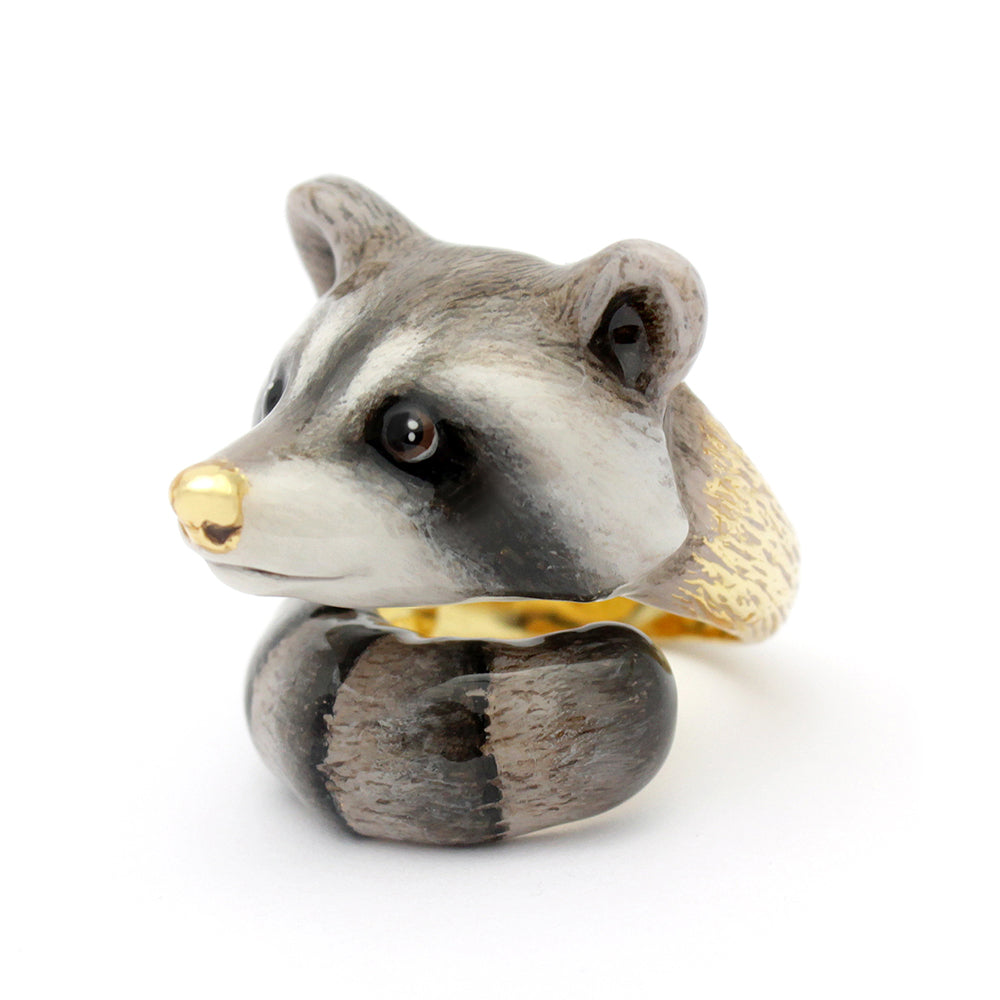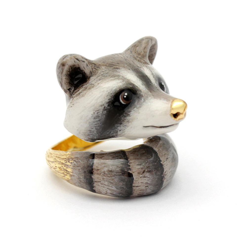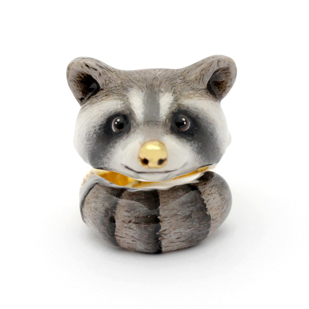 How about this adorable Raccoon Ring ! Exquisitely hand painted with touches of 18k gold to highlight. Who wouldn't love this rascally raccoon!