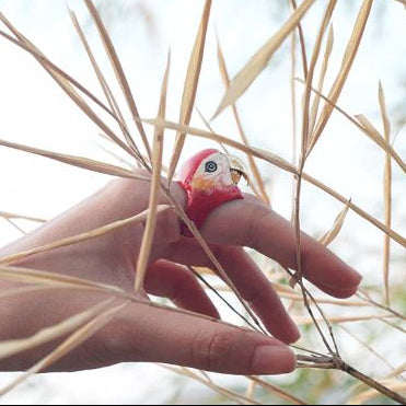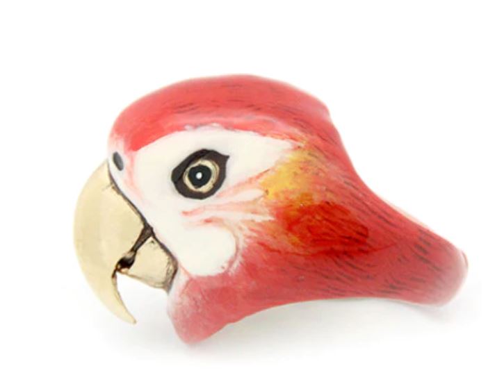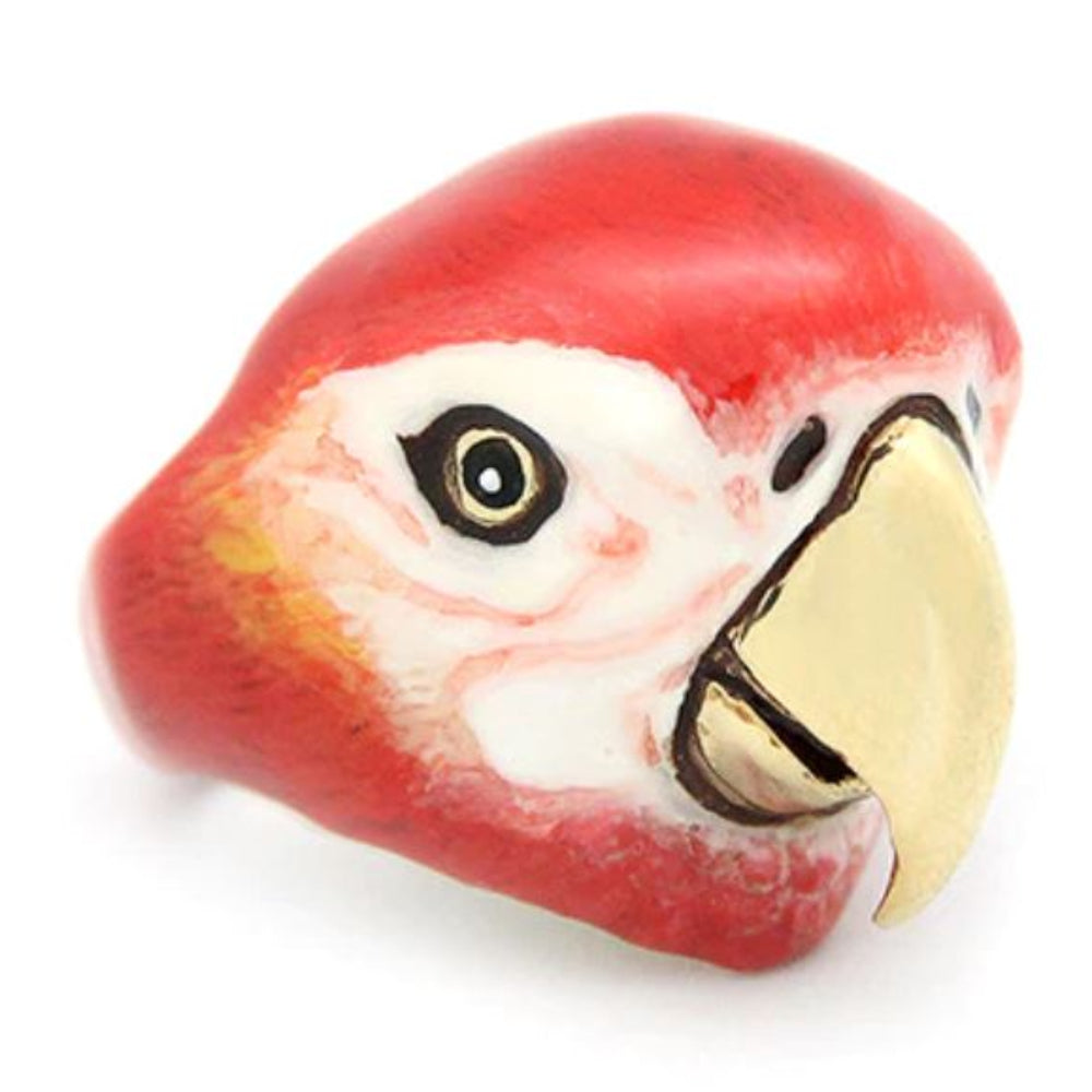 Dive into the paradise of colourful birds. Sky Dancer Collection. Scarlet Macaw Ring, Delightful Red Macaw.
