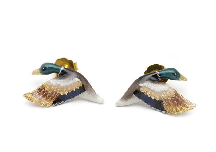 Look at the Flying Ducks ! These sit on your ears so beautifully and appear to the be flying up your ears. The details is just stunning. Hand painted enamel on brass and finished with 18k gold details. Exquisitely detailed - you will love these earrings and will I am sure get many comments about them.