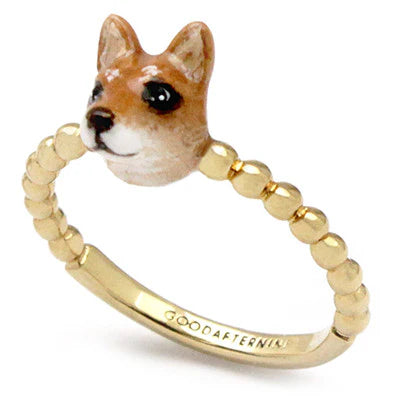 Original, hand-finished DOG ring by GOOD AFTER NINE, crafted from brass+18k gold plating with high quality enamelling.