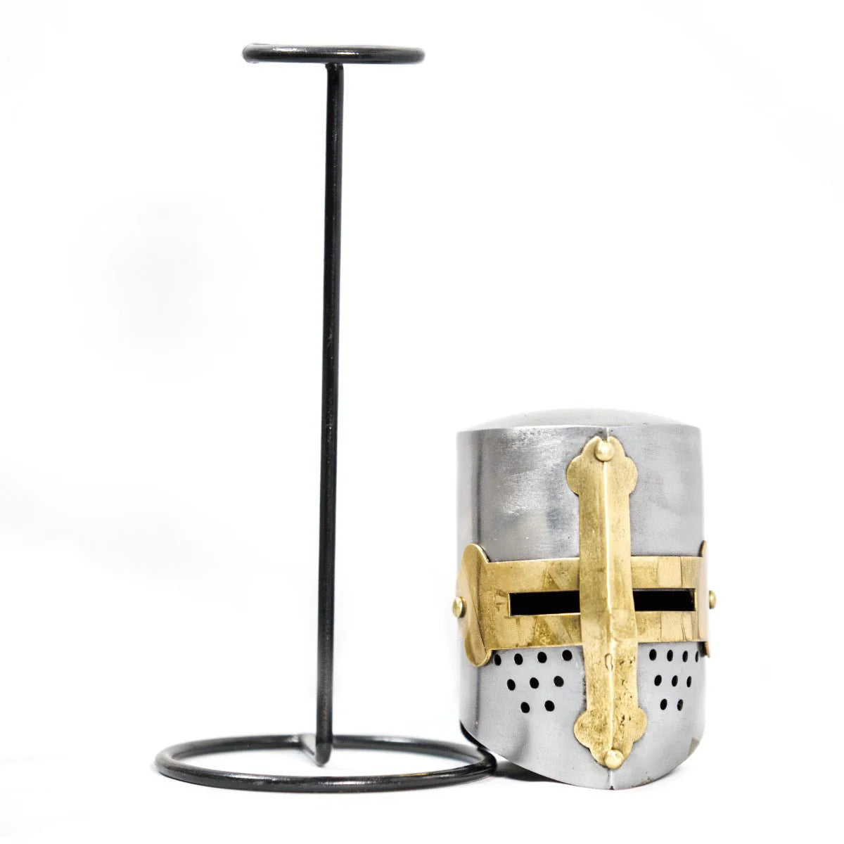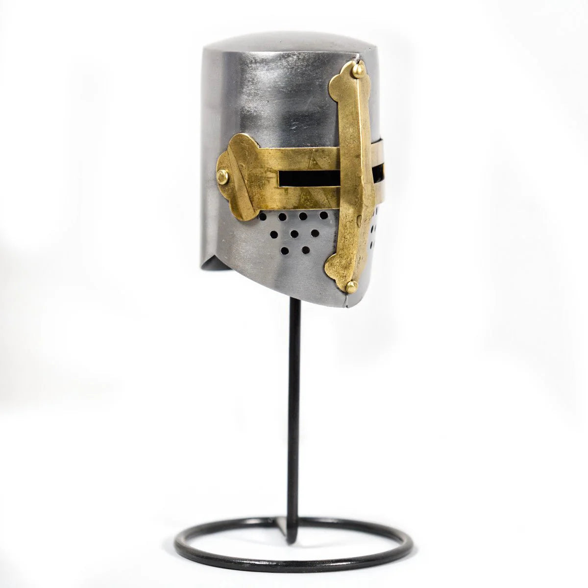 Medieval Knight Templar Miniature Helmet with Iron Stand is backordered and will ship as soon as it is back in stock.